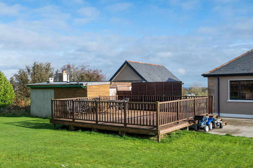 Set on a generous 0.79-acre site, the outdoor space surrounding this beautiful home offers an exceptional blend of elegance, practicality, and country charm. To the front, neatly maintained lawns and stone boundary walls create an inviting approach, enhanced by raised flower beds that bring seasonal colour. To the rear, an elevated decking area captures tranquil countryside views?an ideal spot for morning coffee or evening gatherings. Beyond this lies the expansive rear garden, offering ample room for children to play or for gardening enthusiasts to indulge their hobby. A true highlight is the bespoke summer room, positioned just off the deck: a luxurious retreat featuring a built-in pizza oven, barbecue, and fireplace, perfect for continuing the evening outdoors in comfort as the air cools. Additional features include a detached garage providing excellent storage or workshop potential, along with a tastefully crafted chicken run that adds a delightful countryside touch. Altogether, this outdoor sanctuary beautifully complements the home?s spacious interior, delivering a lifestyle of relaxed sophistication in a picturesque rural setting.
