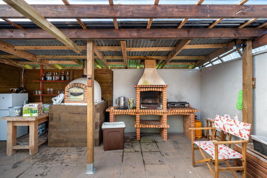Outside, the property is equally impressive, with expansive gardens to the front and rear and a detached garage for additional storage or workspace. A standout feature is the bespoke outdoor retreat positioned just off the elevated decked area. This charming space?complete with a pizza oven, built-in barbecue, and inviting fireplace?offers the perfect setting for relaxing summer evenings. Whether entertaining or unwinding after time spent outdoors, it provides a cosy, atmospheric extension of the garden living experience. The extensive site offers sweeping views over open countryside providing a private and tranquil setting for family life.