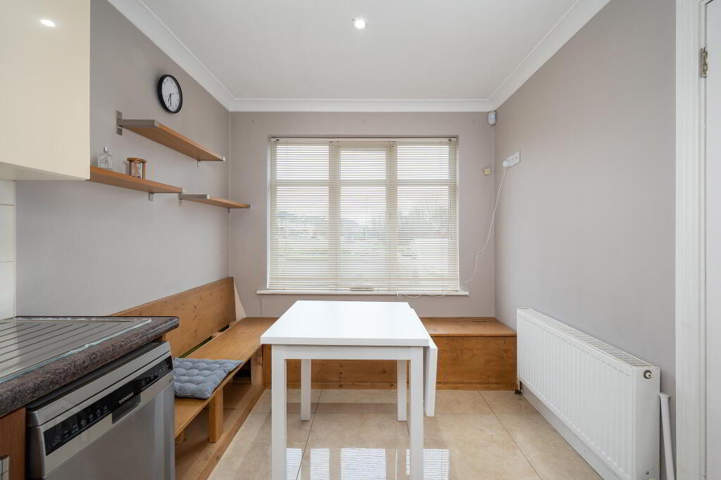 The ground floor features a welcoming entrance hall with guest WC, leading to a bright, open plan kitchen and dining area that flows effortlessly into the sitting room. The living space boasts a solid fuel stove and patio doors opening onto a private, not overlooked rear garden, ideal for outdoor dining and relaxation. Being an end terrace property, it enjoys added privacy and off street parking.