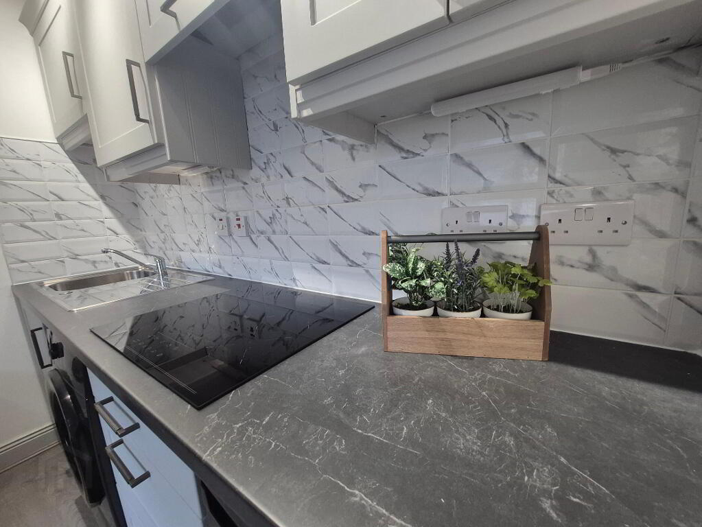Recently refurbished throughout, the property boasts a stylish and contemporary interior, featuring new flooring, upgraded light fittings, and a brand-new kitchen complete with an elegant breakfast counter?perfect for both everyday dining and entertaining. A large window to the front fills the open-plan kitchen, dining, and living area with natural light, creating a bright and inviting space.