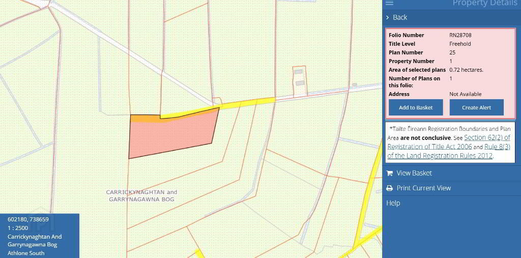 Driving from Athlone out the old Ballinasloe road R446 pass Colaiste Chiarain, drive from approx 1km, turn left along the L7613 continue for approx 1.75km the land is located on the right hand side.